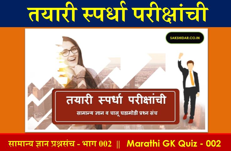 तयारी स्पर्धा परीक्षांची || मराठी सामान्य ज्ञान प्रश्नसंच भाग 002 || Marathi GK Quiz 2020 – 002