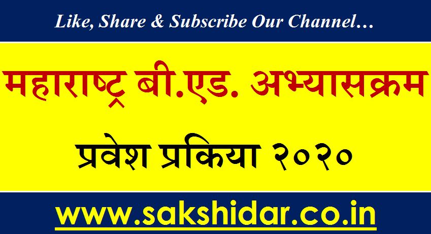 महाराष्ट्र बी.एड. अभ्यासक्रम प्रवेश प्रकिया २०२० ||   B Ed  Admission Process in Maharashtra Marathi 2020.